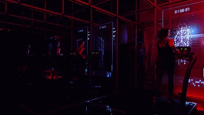▼德國(guó)柏林一處未來(lái)感十足的NIKE健身空間,頭上旋轉(zhuǎn)的LED燈光,加上跑步機(jī)前健身者的全息投影,都能讓健身的人多了運(yùn)動(dòng)的激情。