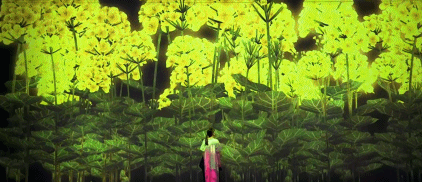 ▼teamLab打造瞬間美的“花的精神”,當(dāng)觀賞者與作品進(jìn)行互動(dòng)時(shí),花會(huì)瞬間自動(dòng)綻放或凋落。作品展現(xiàn)的是日式的凄涼美學(xué),蘊(yùn)含著設(shè)計(jì)者的悲觀思維。