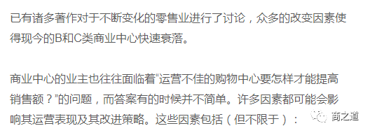 為此,我們選取了文章《Transforming Class B and C Retail Centers: An Overview》中的主要內(nèi)容,來探討可以使運(yùn)營不善的購物中心提高業(yè)績的可行方法,希望能為解決這類問題的提供一些方法框架。