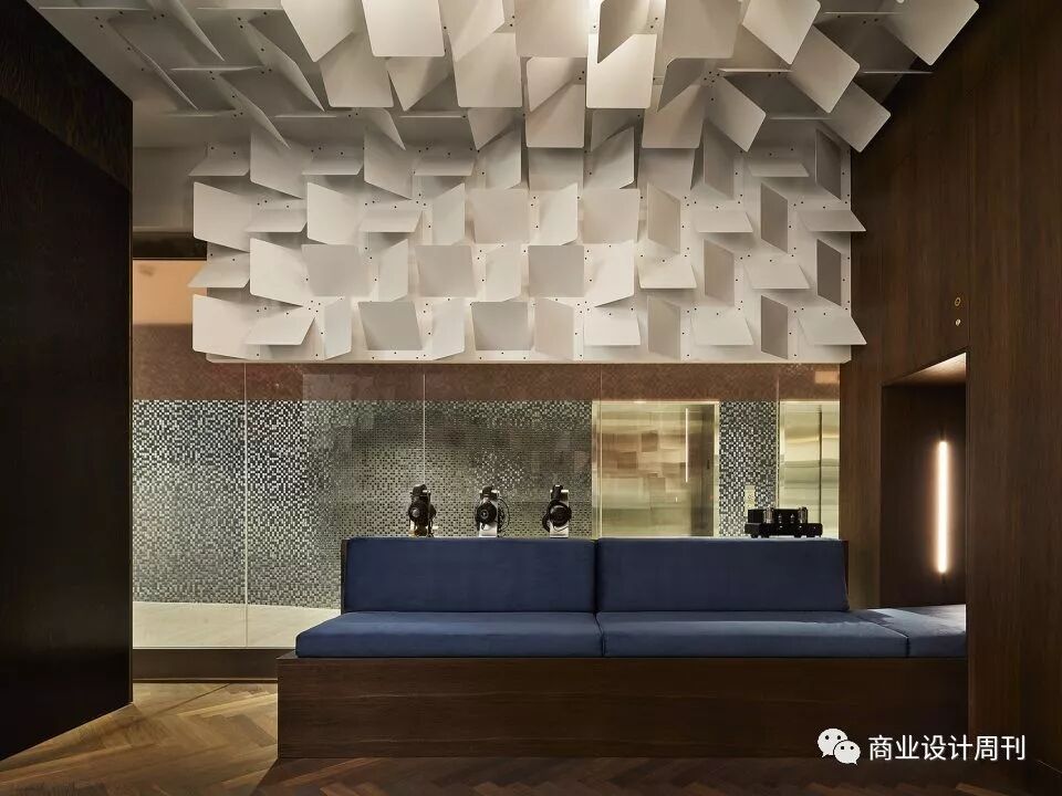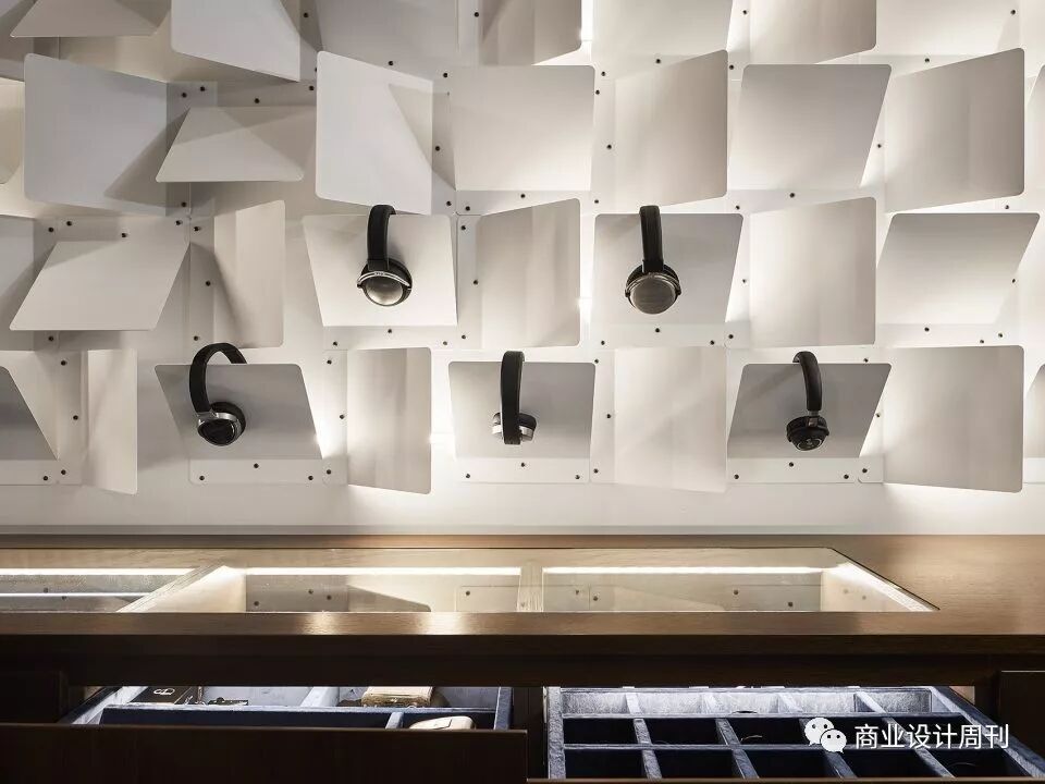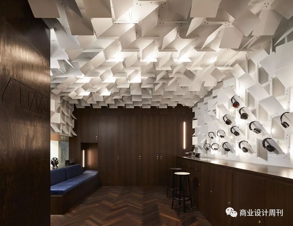 設(shè)計師根據(jù)零售店售賣商品的特質(zhì)——音響類,給出了一個非常大膽的想法,那就是為顧客營造一種單純的音樂環(huán)境,排除任何外界條件,創(chuàng)造了一個親密,昏暗而又舒適的空間,較小的空間尺度給顧客帶來一種安靜的,如同休息室一般的感覺,讓他們在經(jīng)過一天喧鬧的都市生活摧殘下可以在這里放松身心,用靈魂感受音樂的魅力。