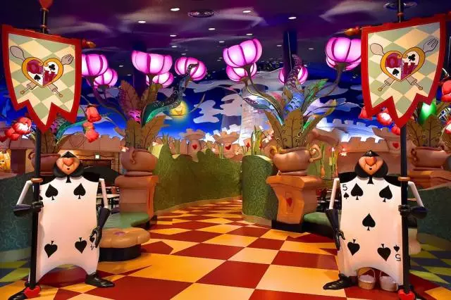 位于東京迪士尼樂園的“桃心皇后宴會廳”以迪士尼電影《愛麗絲夢游仙境》為藍本,還原故事中的桃心皇后城堡,顧客同時化身皇后的宴客,參與其中。餐廳推出愛麗絲主題的西餐甜點等,并設(shè)有兒童套餐。